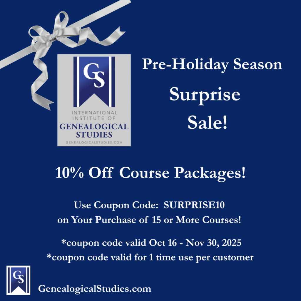 Go to GenealogicalStudies.com to Take Advantage of this Offer